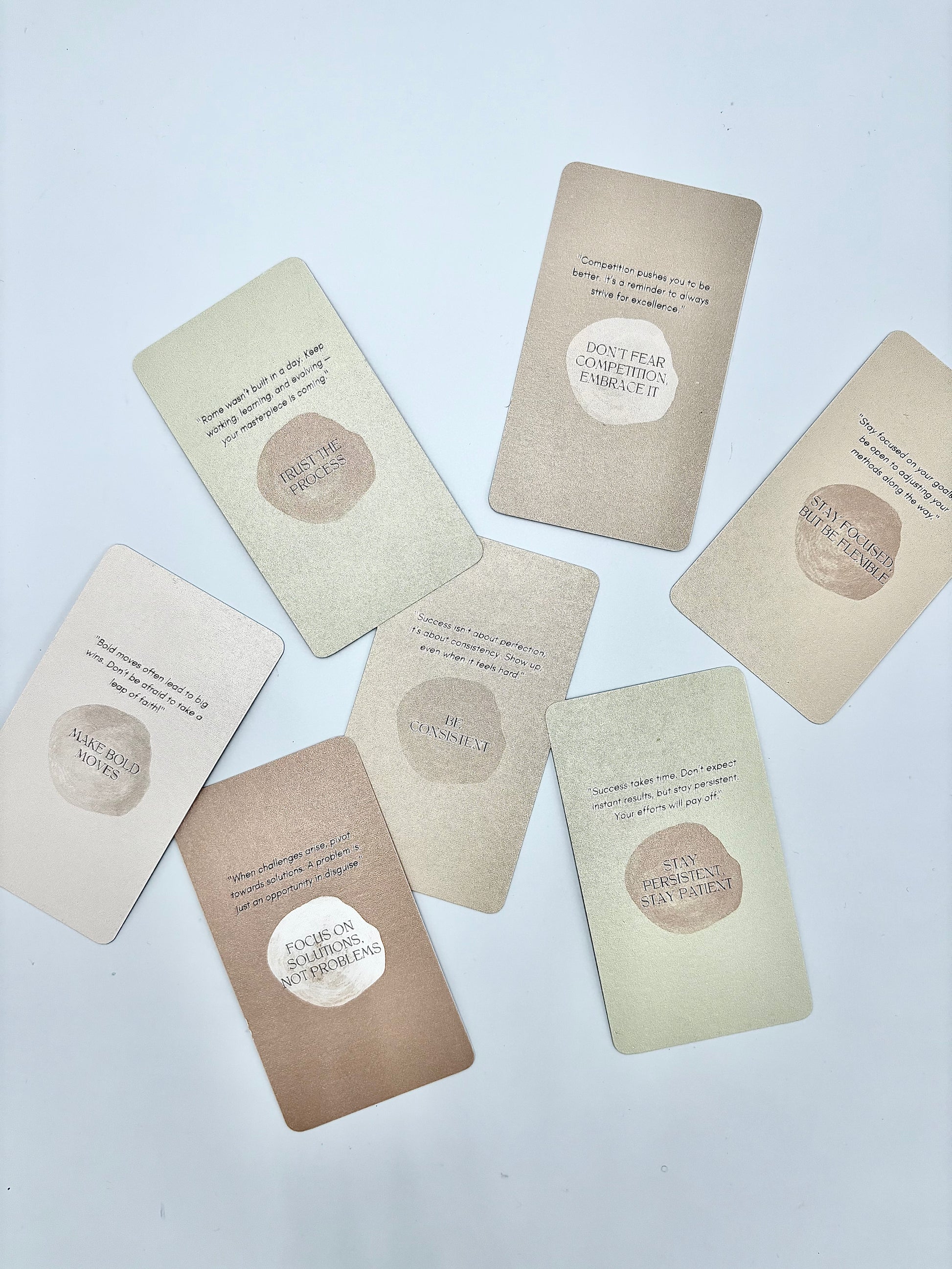 Our 42-card deck is your new go-to tool for entrepreneurial growth and mindset mastery. Packed with powerful business insights, motivational prompts, and strategic tips, this deck is designed to help you stay focused, take action, and level up—whether you're just starting out or scaling your next big idea.